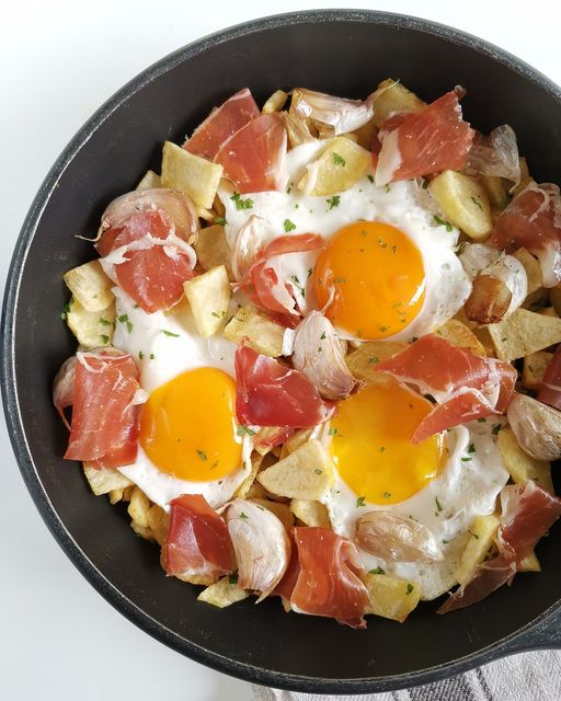 Huevos rotos con jamón